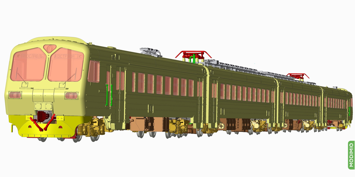 Проект "Наши поезда" от МОДИМИО продолжает развиваться. ранее в серии уже изготавливались вагоны от электропоезда ЭР2 (круглоголового). Однако, МОДИМИО продолжает удивлять, недавно на своих страницах компания представила 3д модель более современного электропоезда ЭД4М.