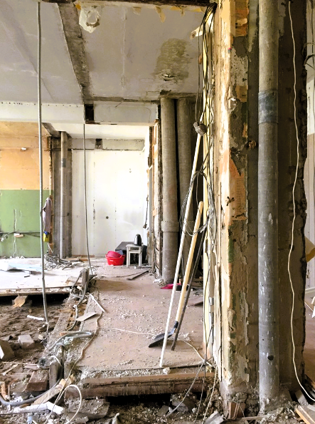 Героиня сегодняшней статьи — деловая женщина. Её новая квартира находится в старом доме. Капитальный ремонт в ней делали почти 20 лет назад. Тогда старые хозяева заменили стояки и трубы, и новая хозяйка не могла поставить счётчики на воду, не ломая перегородки. Из-за ошибок, которые допустили при старом ремонте, пришлось полностью разобрать все стены в квартире. Хорошо, что квартира на последнем этаже, и можно было легко поменять все коммуникации. В квартире было две длинные комнаты и кухня. Строители всё переделали, чтобы сделать просторную гостиную-столовую. Коридоры убрали. При спальне сделали большую гардеробную и хозяйскую ванную. Гостевую ванную сделали в холле. Хозяйке удалось полностью согласовать перепланировку во всех необходимых инстанциях. Но, она говорит, что это было непросто, потому что дом старый и с ним было сложно. Проект делали 1,5 года. Из них 6 месяцев ушло на согласования. В первоначальной планировке квартиры был длинный коридор, который начинался от входной двери