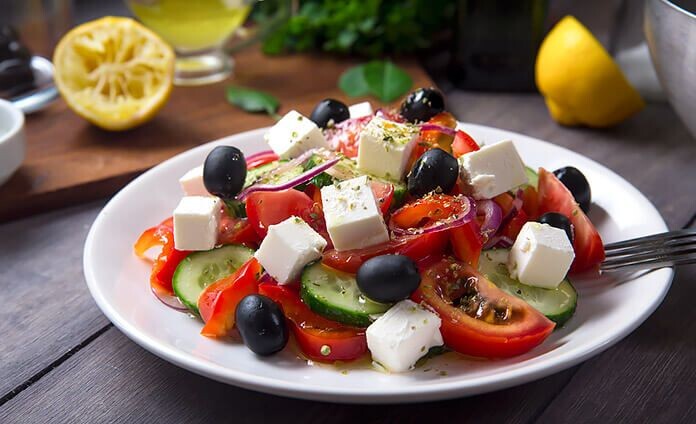 Рецепт: Греческий салат #### Ингредиенты: - 3 помидора - 1 огурец - 1 красный лук - 200 г оливок - 200 г маринованных перчиков - 200 г брынзы - 3 ст.л. оливкового масла - 2 ст.л. красного винного уксуса - Соль, перец по вкусу - Свежие травы (укроп, петрушка) для украшения #### Инструкции: 1. Нарежьте помидоры, огурец, лук, брынзу и маринованные перчики кубиками. 2. Переложите все нарезанные овощи в большую миску. Добавьте оливки. 3. Приготовьте заправку для салата, смешав оливковое масло, винный уксус, соль и перец по вкусу. 4. Налейте заправку на овощи и аккуратно перемешайте. 5. Украсьте свежими травами перед подачей. Греческий салат готов! Этот освежающий и ароматный салат станет отличным дополнением к любому обеду или ужину. Приятного аппетита! 🥗🫒