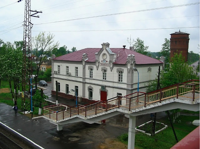 Вот вокзал в Ожерелье. Вид его знаком мне с детства: двухэтажное кирпичное здание, шесть окошек наверху, пять - внизу.
