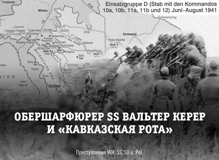 «Рота из пленных добровольцев создавалась с целью её применения в борьбе с партизанами. Рота состояла из очень надёжных людей разных народностей, таких как украинцы, татары, грузины и других народов Кавказа. Я был руководителем этих добровольцев. Командиры взводов и отделений также выбирались из состава этой роты. Я сам имел двух надежных офицеров в качестве своих заместителей». Керер также описал вовлечение «Кавказской роты» в структуру айнзатцгруппы D (EG D): «Моё кавказское подразделение было непосредственно подчинено штабу EG D. Ещё я хотел бы упомянуть, что в подразделении были грузинский и русский командиры роты. Я передавал им приказы штаба и принимал участие при всех использованиях подразделения».