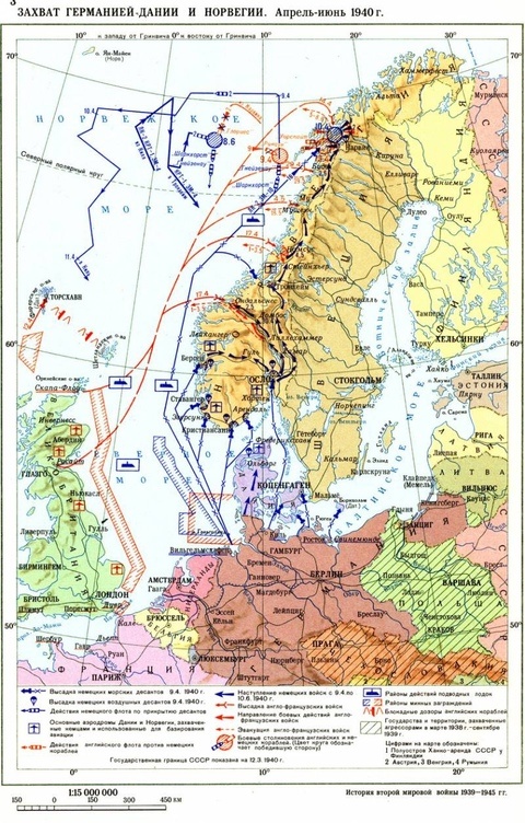 9 апреля 1940 года, началось вторжение Германии в Данию и Норвегию (датско-норвежская операция, или операция «Везерюбунг»; «Учения на Везере», или «Везерские манёвры»). Вермахт оккупировал Данию и Норвегию, укрепив стратегическое положение Третьего рейха в Северной Европе.