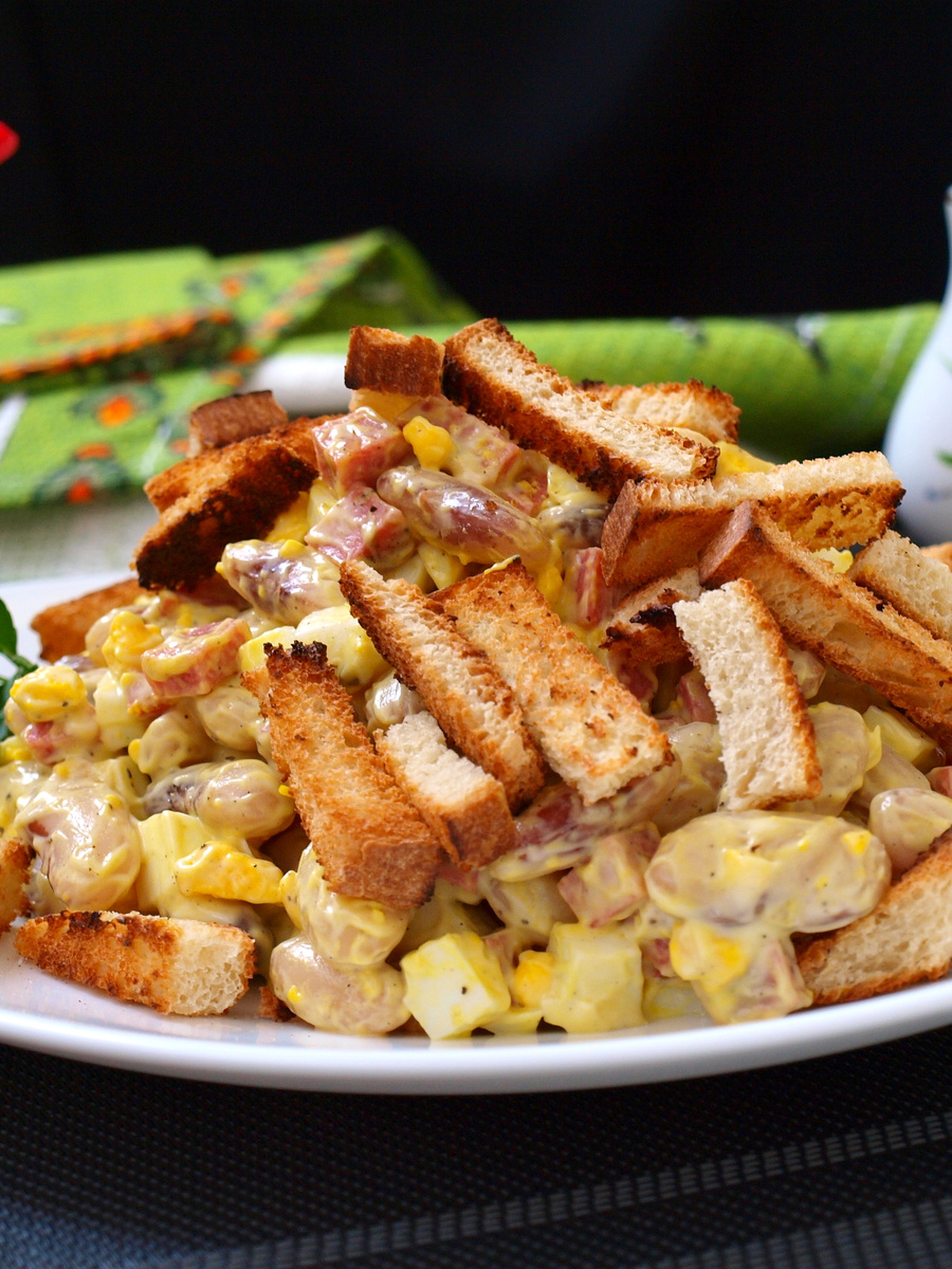 Фасоль подойдёт любая, но консервированная будет быстрее. Сухарики можно (и даже нужно) приготовить своими руками, но из пакетика будет быстрее. А колбаса… колбасу выбирайте вкусную, но с домашней колбасой вам будут говорить, что ВЫ – просто ЧУДО💯!