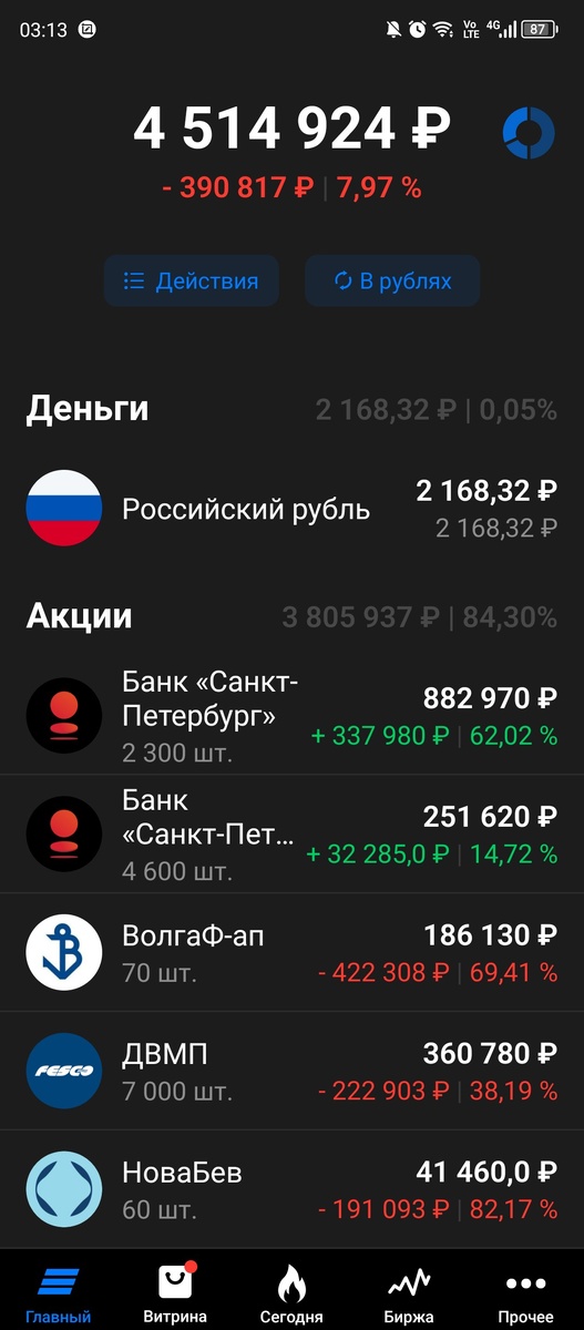 Нашла в себе силы продать в минус Алросу и Сегежу, по последней особенно себя хвалю глядя на нынешние котировки. Ушли не вписывающиеся в мою стратегию Роснефть и Татнефть с определенным профитом. Даже префы Татнефти которые в нее до определенного времени вписывалась тоже ушли т.к. время течет, мысли крутятся, взгляды меняются : )