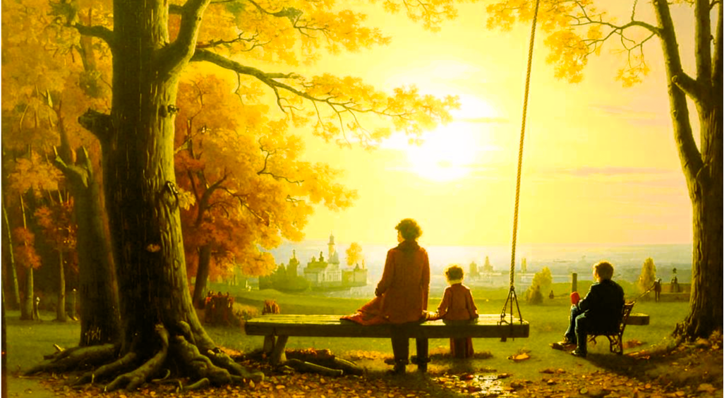 Они подошли к качелям и Саша сел на одну из них. Марина начала толкать и качать Сашу, а он в это время как взлетал в небо, тянулся руками, как будто мечтал прикоснутся к облакам. Вдруг он увидел что-то, что заставило его сердечко замереть. На скамейке неподалеку от них, сидел мужчина, который был очень похож на его папу.