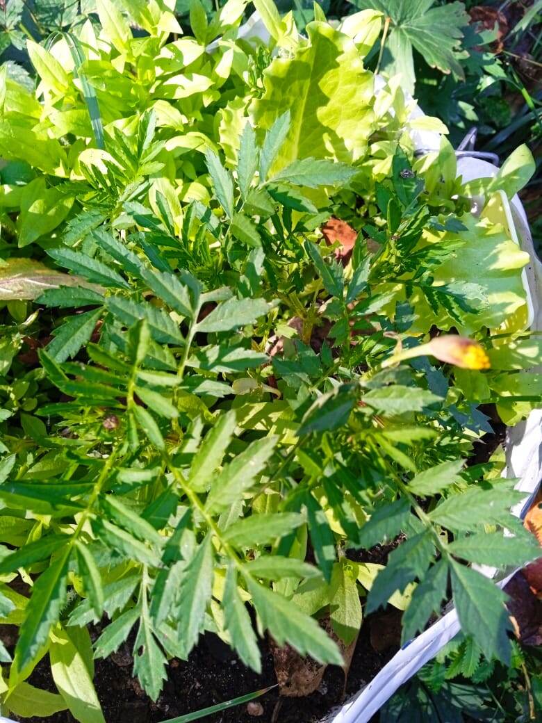 Продолжает цвести с июля Роза Alexandre Pouchkine (Александр Пушкин) - чайно-гибридная роза, подобранная мною в подъезде и высаженная на клумбу. Проклюнулись бархатцы, выращенные мною из семян уже этого лета.