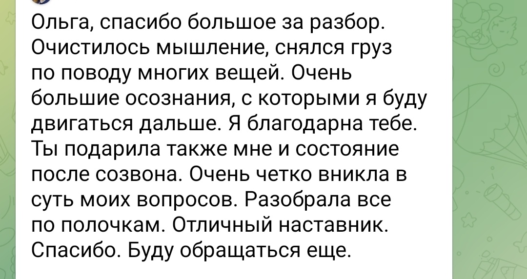 ✔️Помогу разобраться что хочешь, что выгодно делать и с чего начинать. Правильно определим точку А, другими, "трезвыми" глазами посмотрим на то, где ты сейчас находишься. ✔️Найти свою ца, выделить идеального клиента. ✔️Полюбить и грамотно вести социальные сети. ✔️Выявить на основе желаний и сильных сторон четкий план работы, который кратно увеличит доход. Появится желание делать действия, понимание какие важно сделать действия. ✔️Избавимся от того, в чем ты себя загоняешь, найдем где нужно поднажать. ✔️Научимся избавляться от сомнений и страхов фактическими действиями. Ты получишь качественную обратную связь и поддержку. Поднимаю боевой дух, укрепляю веру в человечество на каждой встрече. Избавимся от расфокусировки, четко определим то направление, в котором стоит прикладывать усилия в первую очередь. Даю четкие, конкретные ответы на каждый твой запрос. Без прелюдий, изотерики, долгих размышлений. Ты услышишь близкий опыт с высокой вероятностью и гарантированно получишь объект