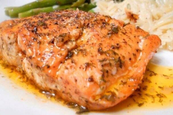 🗒Ингредиенты: лосось - 400 г чеснок - 2 зуб. (выдавить через пресс) имбирь свежий - 1 ч. л. (натереть на терке) соевый соус - 1 ч. л. масло оливковое - 1 ч. л. сок лимонный - 1 ст. л. базилик сушеный - 0.5 ч. л. перец черный молотый - по вкусу соль - по вкусу 🗒Способ приготовления: Рыбу вымыть и обсушить. Нарезать на порционные кусочки. Смешать в мисочке все ингредиенты (кроме лосося). Натереть рыбу с двух сторон подготовленным маринадом. Выложить на фольгу. Аккуратно завернуть рыбу в фольгу и убрать в холодильник мариноваться на 2-3 часа как минимум. Запекать рыбу в фольге не разворачивая при температуре 180 градусов 25 - 30 минут. Подавать рыбу украсив зеленью и дольками лимона. Так же можно подавать под соусом из натурального йогурта, чеснока и зелени. Приятного аппетита!