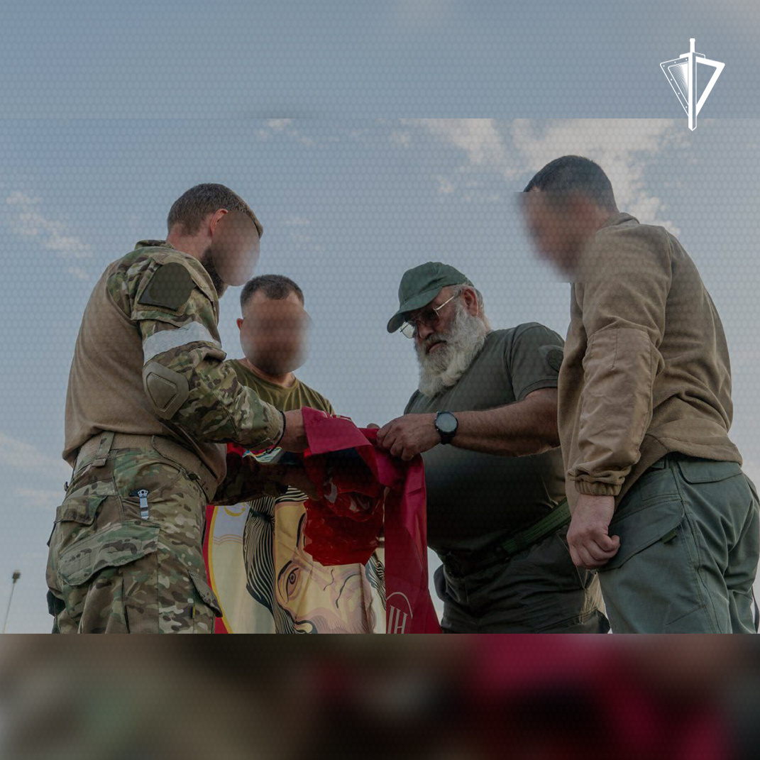Главный священник по работе с Росгвардией на СВО протоиерей Святослав Чурканов вручил военнослужащим освященное знамя и икону святого Георгия Победоносца, являющегося покровителем российского воинства.