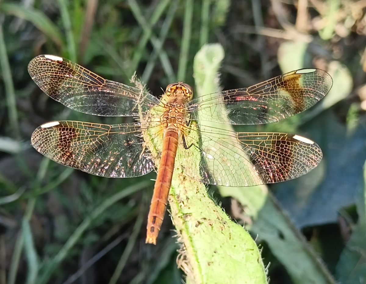 Во второй половине лета на лугах с невысокой растительностью появляются очень красивые, и необычные стрекозы. Необычность и красота их заключены в поведении и внешнем виде. Это небольшие, от трёх до четырёх сантиметров в длину, насекомые, с хорошо заметными бурыми полосками-перевязями на крыльях. За свою окраску они и получили название - Стрекоза Перевязанная. На латыни Sympetrum Pedemontanum. В научной литературе это название дублируется как Сжатобрюх Предгорный. Необычность Перевязанной Стрекозы в её слабом, порхающем полёте. Являясь воздушным дневным хищником, как и все стрекозы, она всё же имеет существенное отличие : Перевязанная Стрекоза летает довольно медленно. Не поймав жертву на дистанции в один метр, она не тратит силы на преследование, а предпочитает присесть на верхушке травы. Стрекоза не может бороться с ветром, стараясь переждать его спрятавшись среди растительности. Из-за желания летать очень низко, выбирает Стрекоза для жизни места с низкой растительностью. Ловит