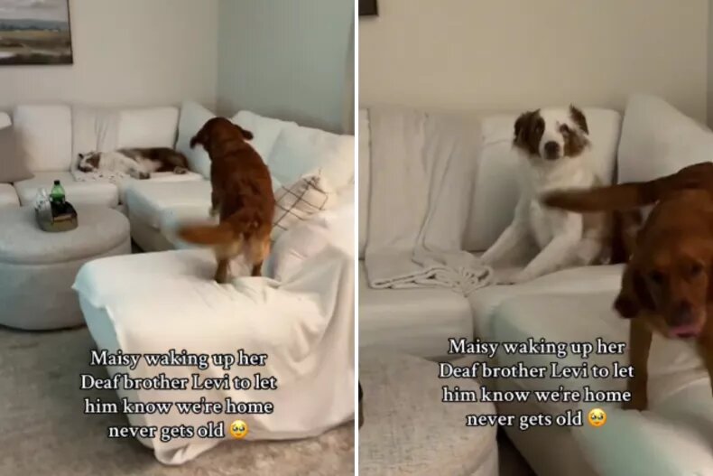 Трогательный способ, которым собака будит своего глухого товарища, не пугая его, завоевал сердца пользователей интернета. Двухлетняя собака по кличке Майси живет в Северной Каролине со своей хозяйкой Сьеррой Джастус и ее трёхлетним коллегой Леви, который родился глухим. В TikTok-видео, которое собрало более 14 миллионов просмотров и было опубликовано в начале месяца, особенная связь между двумя собаками тронула сердца зрителей. "Майси будит своего глухого брата Леви, чтобы сказать ему, что мы дома", — гласит текст на видео. В ролике видно, как Майси запрыгивает на диван и аккуратно толкает Леви носом, чтобы разбудить его. Леви, полный радости, сразу вскакивает, виляя хвостом, приветствуя свою семью, вернувшуюся домой. "Майси всегда была близка с Леви, но в конце 2022 года мы начали замечать, что она стала больше обращать внимание на то, что он делает или не делает, — рассказала Джастус. — Она стала очень заботливой, хотя она и младше. Она настоящая мама". Хотя семья часто делает специа