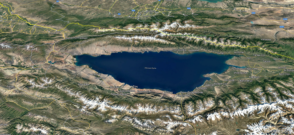 Озеро Иссык-Куль бессточное озеро в Кыргызстане. Входит в 30 крупнейших по площади озёр мира и занимает седьмое место в списке самых глубоких озёр. Расположено в северо-восточной части республики, между хребтами Северного Тянь-Шаня: Кюнгёй-Ала-Тоо и Терскей Ала-Тоо.