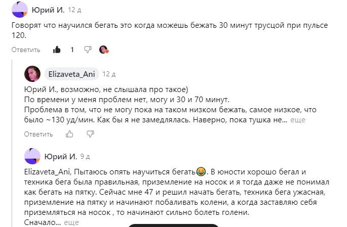 Всем привет! Небольшой отчет. На позапрошлой неделе под статьей о пульсовых зонах были очень интересные замечания от Юрия по поводу того, как начать бегать: И проскочила мысль, что начинать бегать надо на пульсе 120 в течении 30-40 минут. Я так еще ни разу не бегала долго. Ибо в моем исполнении на таком пульсе бег получается медленнее, чем неспешная ходьба. А это в свою очередь крайне тяжело для моей психики. Но поскольку особого прогресса в беге у меня нет, то почему бы не попробовать! В конце июля я наткнулась на крутейшую книгу - "Бег по шоссе для серьезных бегунов" Пита Фитзингера и Скотта Дугласа. Я ее искренне рекомендую! Там мега полезная информация. Другое дело, что ее еще надо на практике воплотить. А это оказалась задача не из легких! Если коротко. Я загорелась книгой, построила программу тренировок (своем тг-канале подробные отчеты постила) и смогла вывезти первые две недели. Дальше меня физически не хватило. План был хорош, жаль исполнение подкачало: После двух недель тако