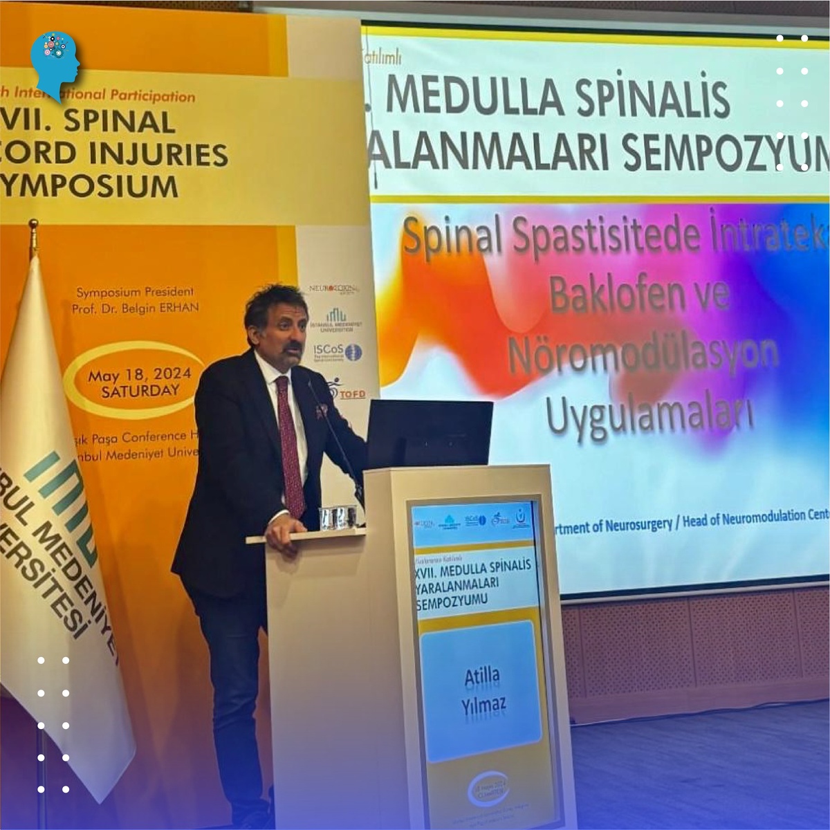 Наш врач Атилла Йылмаз был приглашен выступить на 17-м Национальном Cимпозиуме по травмам спинного мозга, который состоялся на прошлой неделе на медицинском факультете Стамбульского университета Медениет 18 мая 2024 года. На этом престижном мероприятии, где собрались ведущие эксперты, исследователи и медицинские работники, занимающиеся развитием области «Лечение и реабилитация людей с травмами спинного мозга», наш доктор выступил с докладом на тему «Применение Интратекальной Баклофеновой Помпы и Нейромодуляции при Спинальной Спастичности». Наш доктор заявил, что очень рад внести свой вклад в эту встречу, где обсуждались инновационные решения, значительно улучшающие качество жизни пациентов, страдающих от тяжелой спастичности. Он также отметил, что для него было большой честью поделиться своими знаниями и взглядами с коллегами и врачами нового поколения, обсудив последние результаты исследований, клиническое применение и будущие направления в этой быстро развивающейся области; и что