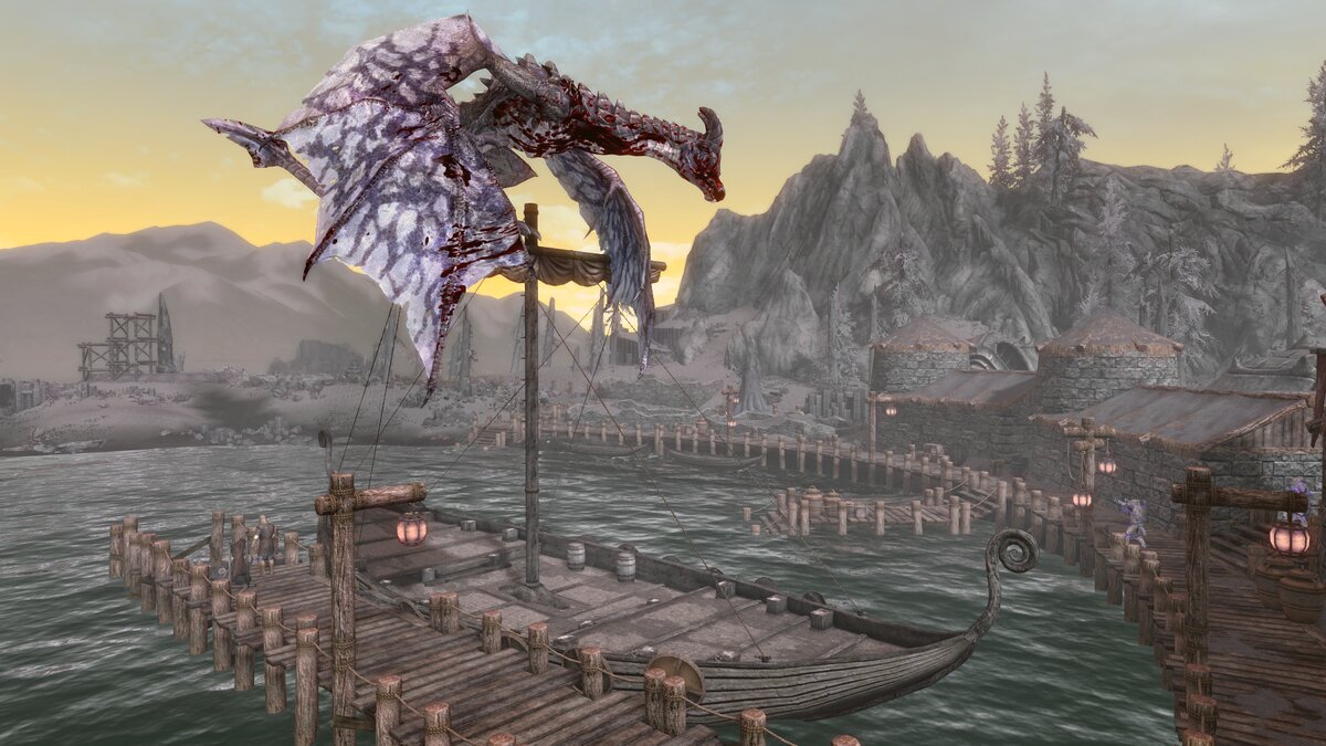 Краткий обзор самых распространённых игровых "багов". Скайриму скоро исполнится 13 лет, но, не смотря на многочисленные переиздания игры, "баги" и "глюки" никуда не исчезают; напротив, иной раз кажется, что их стало больше. Хотя без багов было бы скучно...))) 1. Немного о драконах Наверняка каждый Довакин сталкивался с тем, что поверженный им дракон не сгорает. Развалится своей тушкой поперёк дороги и лежит; и душу не отдаёт, и гореть не собирается: Ну а если всё же крылатый ящер сгорел, то не факт, что его скелет будет лежать спокойно - иногда груда драконьих костей устраивает настоящую свистопляску. Или же оказывается совсем не там, куда его изначально уложили: 2. Захочу - и полечу! Летают в Скайриме не только те, у кого есть крылья - в небеса стремятся люди, животные, рыбы и прочие существа. Хотя такие полёты для многих из них чреваты летальным исходом: К небесам стремятся не только люди-звери, но и неодушевлённые предметы. Ну вот надоело лежать на одном месте, почему бы и не полеви