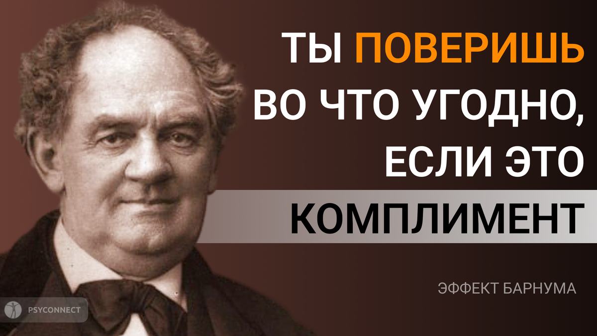 Финеас Барнум — известный шоумен, бизнесмен, владелец цирка и различных шоу. Больше всего его запомнили как ловкого мошенника. Ему приписывают создание нескольких афер. Он, возможно, злоупотреблял и точно манипулировал огромным количеством людей. Так что неудивительно, что психологический эффект, носящий его имя, связан с тем, что люди верят в вещи, которые на самом деле не совсем правдивы.
