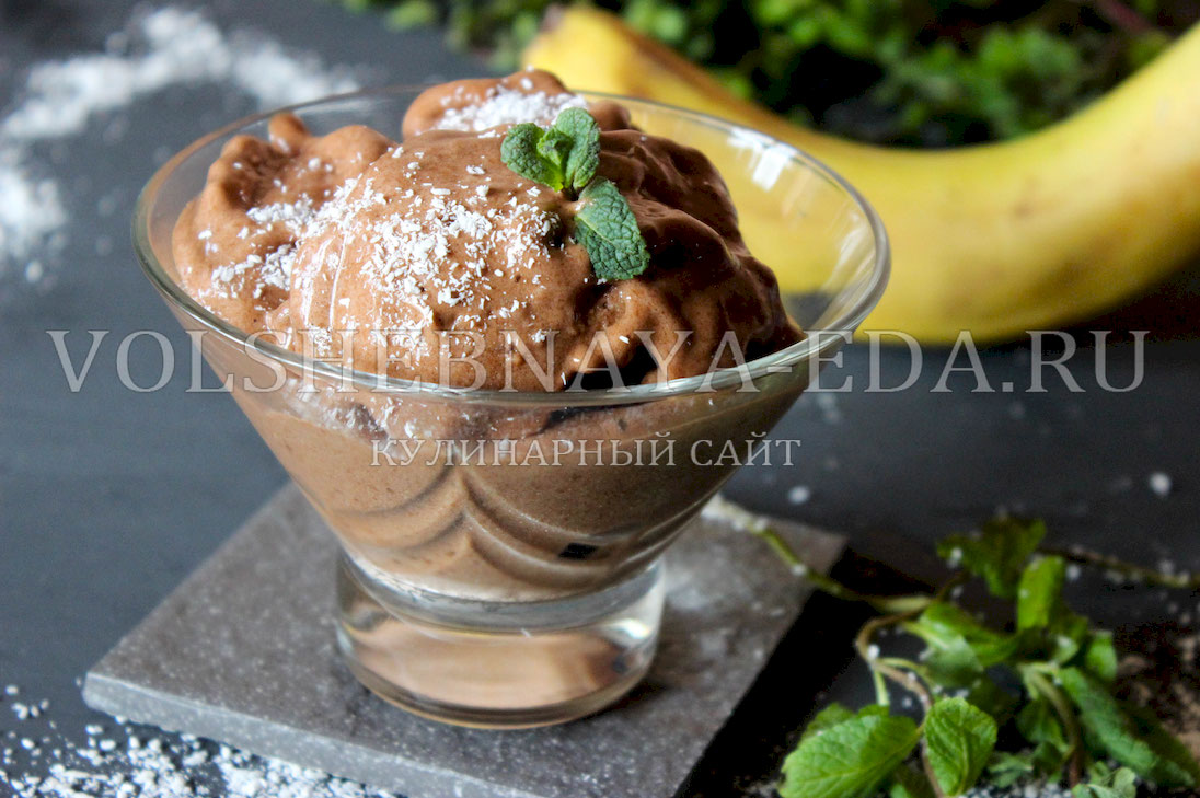 Это потрясающее мороженое! Приготовленное из бананов, оно очень вкусное, нежное, плотное и ароматное. Рецепт по достоинству оценят не только сладкоежки, но и приверженцы вегетарианского и постного питания, а также оно понравится всем тем, кому нельзя употреблять в пищу молоко. Шоколадно-банановое мороженое включает в своем составе всего три ингредиента: бананы, сахарную пудру и какао-порошок. В продуктах содержится минимальное количество влаги, поэтому всё отлично замораживается, мороженое получается нежным, без кристаллов льда, отдаленно напоминает по структуре щербет, но более нежный. Превосходный десерт для детей и взрослых, быстрый и простой в приготовлении. Бананы я очищаю и нарезаю тонкими колечками. Желательно, чтобы они были спелыми, тогда и мороженое получится сладким и однородным. Выкладываю колечки на доску и отправляю в морозильную камеру на 3-4 часа. Можно использовать специальные контейнеры, предназначенные для низких температур, но тогда времени на замораживание потребуе