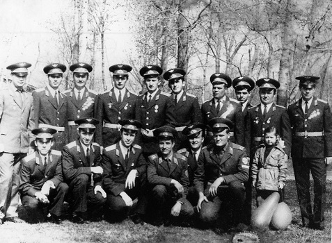 Бравые лейтенанты Чергизов, Красиков, Савицкий и Тепляков перед праздничным построением - 09.05.1978