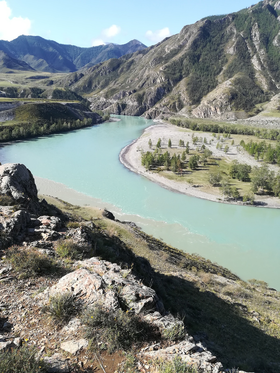По Чуйскому тракту. Слияние рек Чуи и Катуни
