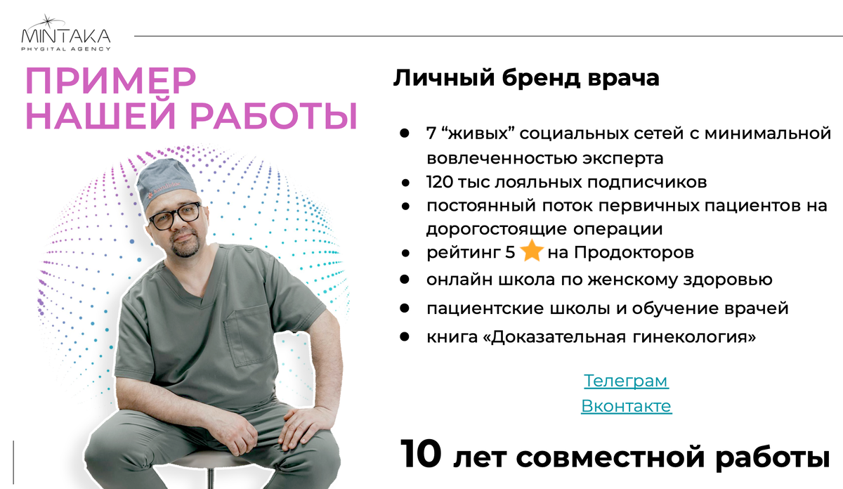 Хотите такие же результаты? Мы можем еще лучше! Напишите нам: диджитал агентство “Минтака”. Продвижение личного бренда врача: https://mintakagroup.ru/med