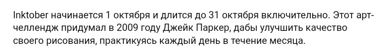 Ой, я прям немножко, хотя нет, множко, волнуюсь! В начале месяца уже выложили список на предстоящий Инктобер. Я сразу же изучила задания - и меня охватило невероятное вдохновение. Не терпится приступить. Теперь режим "жду октябрь" включён на максимум.