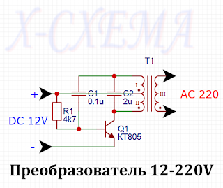 Вместо резистора R1 можно поставить последовательно подключенный постоянный резистор на 1к2 и переменный на 6к8 которым можно будет регулировать частоту преобразователя. Источник https://x-cxema.blogspot.com/2020/01/preobrazovatel-12-220-volt.html