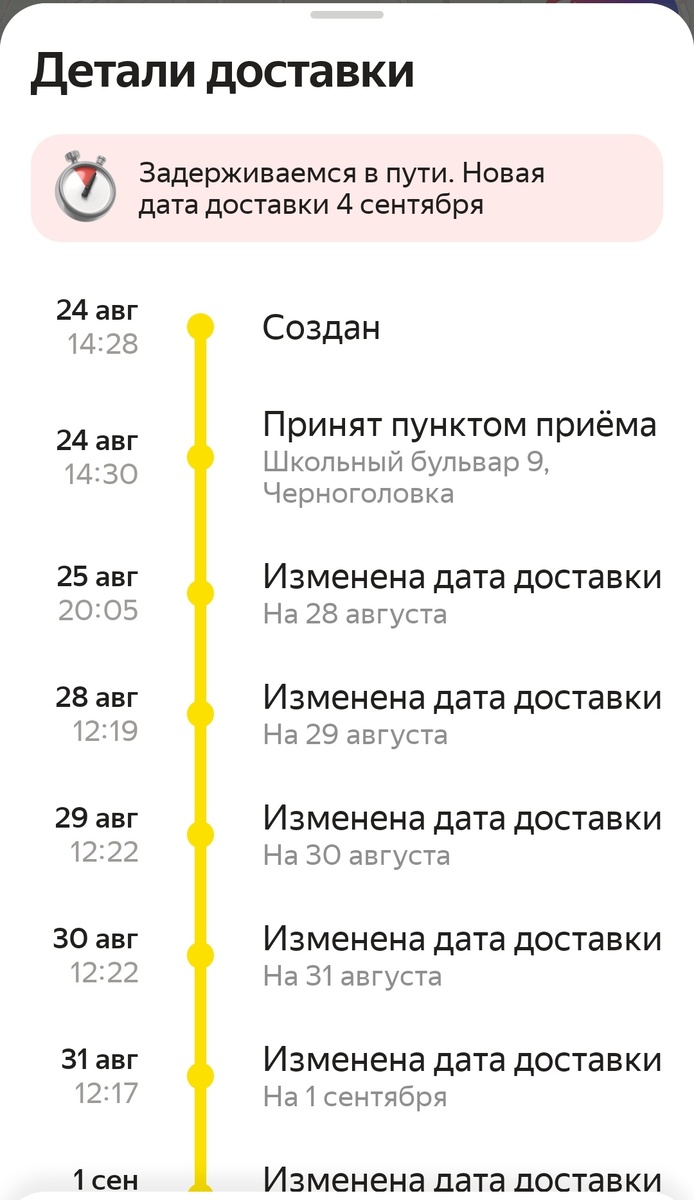 Заказала я на авито товар с доставкой через яндекс. И, как говорится, ничего не предвещало! Продавец в тот же вечер заказ отправила. Обещанный срок доставки примерно 3 дня. Жду. Только вместо уведомления о прибытии заказа, я начинаю ежедневно получать сообщения о переносе даты доставки. Хм... Пишу в поддержку авито. Но здесь толку мало, до оператора не достучишься. Чат-бот только и может, как попугай повторять одно и тоже: либо отменить заказ, либо ждать и верить, что он дойдёт. А если будет признан утеряным, деньги вернут. Но я не это хочу. Я хочу придать ускорения. Через яндекс гоу есть возможность более подробного отслеживания. И что я вижу? По этим данным, заказ всё ещё в точке приёма, а с даты приёма прошло почти 2 недели! Это вообще как? Поддержка яндекса человечнее, но отвечают оооооочень долго. Обещают разобраться. Ага. Пишу продавцу, чтобы она со своей строны попробовала раскачать систему и заказ всё-таки начал двигаться. Оказалось, у неё два заказа было отправлено в тот