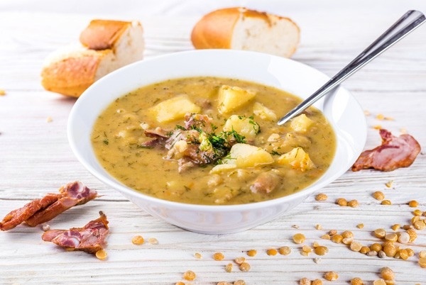 Гороховый суп — популярное первое блюдо, которое готовят во многих странах мира. Его основными ингредиентами являются горох, мясо (чаще всего говядина или свинина), картофель, морковь, лук и специи. Также в суп могут добавлять копчёности, бекон, гренки, зелень и другие ингредиенты по вкусу.