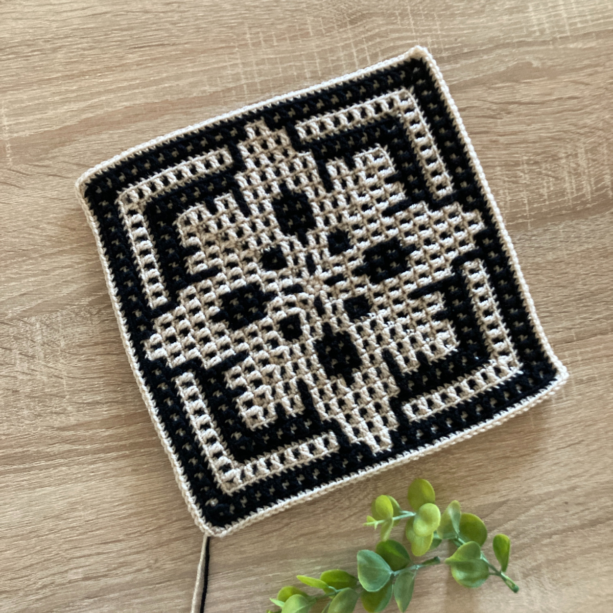 Связала второй образец мотива для пледа в мозаичной технике вязания крючком. Светлый оттенок пряжи остался такой же, как и в первом образце, а вместо фиолетового взяла чёрный цвет пряжи.