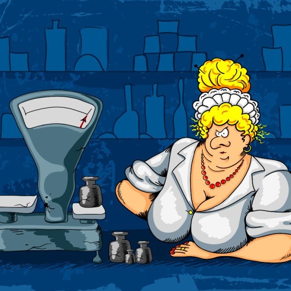 По другую сторону прилавка возвышалась продавщица, всем своим видом показывая, как ей надоели покупатели вообще, и этот побитый молью дед в частности. Тетке было хорошо за сорок: грудастая, в бирюзовом обтягивающем пышные телеса халатике, с кружевной наколкой на вытравленных добела волосах, уложенных в крупную волну, красные губы-уточки, ровный штакетник нарощенных ресниц, черные дуги тату-бровей и натуральный румянец во всю щеку. Прекрасная иллюстрация «буфетчицы» из 70-х годов прошлого века со всеми буфетчицкими атрибутами, но в современном варианте. Я таких называю «краса ненаглядная».