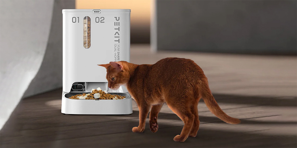 Многие владельцы домашних животных проводят большое количество времени на работе, а также могут уехать в путешествие, оставив питомцев одних дома. Для того, чтобы они не голодали без хозяина, существуют автоматические кормушки, подающие еду кошкам и собакам по специальному расписанию. Petkit Fresh Element YumShare Dual Hopper позволяет не только дистанционно кормить питомцев, но и поддерживать с ними аудиовизуальный контакт благодаря встроенной камере 1080p и динамику. Общий объём резервуаров равен 5 л. Его хватит на 30 дней кормёжки крупной кошки. Управление количеством порций и их интервалом происходит в мобильном приложении. Производитель создал автоматическую кормушку таким образом, чтобы обеспечить беспрепятственную подачу пищи и сохранение её свежести в течение длительного времени. В процессе транспортировки корма к миске он перемешивается, исключая блокировку основного прохода. Если всё-таки пища забаррикадировала путь, то на смартфон пользователя незамедлительно отправится увед