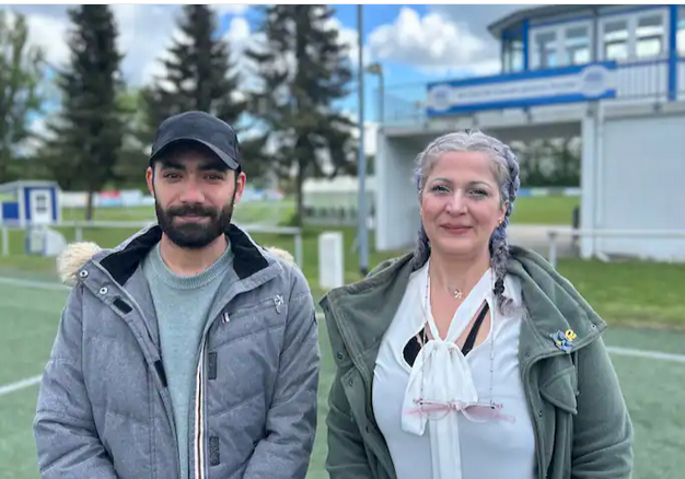 Сирийцы Анас Альхаререи, 26 лет, и Ханан Багдади, 48 лет, в спортивном клубе SV Blau Weiss '90 в Нойштадте-ан-дер-Орле, Германия, где они работают в рамках пилотной программы для просителей убежища