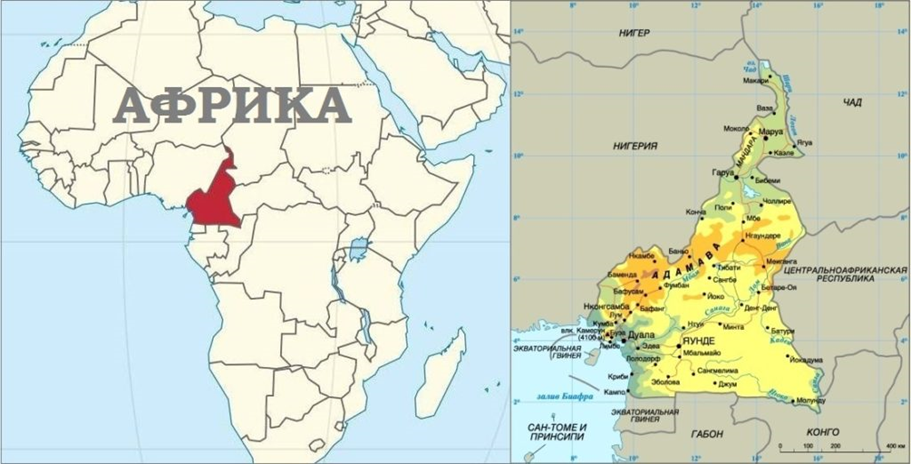 Камерун граничит на северо-западе с Нигерией, на севере и северо-востоке — с Чадом, на востоке — с Центрально-Африканской Республикой, на юге — с Габоном, Конго и Экваториальной Гвинеей. Яунде — одна из самых тихих и спокойных столиц Африканского континента.
