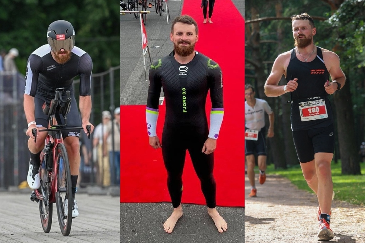 4 км плавание, 180 км велосипед, 42 км бег. Уложился в лимит и финишировал за 13 часов.
