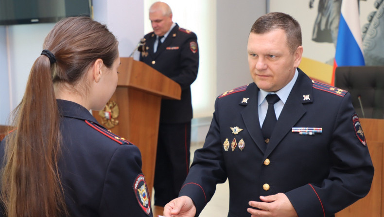 11 сентября ряды тверской полиции пополнил 21 молодой сотрудник. Временно исполняющий обязанности начальника УМВД России по Тверской области полковник полиции Сергей Голубев вручил новоиспечённым специалистам удостоверения сотрудников органов внутренних дел и поздравил молодых офицеров с полноправным вступлением в ряды тверских полицейских. Напомним, что вчера стало известно, что бывший начальник УМВД по Тверской области Сергей Камышев покинул пост. Вручение служебных удостоверений стало уже традицией, которое ежегодно проходит в торжественной обстановке. "Достойно и честно исполняйте свои служебные обязанности. Государство и общество рассчитывает, что ваша служебная деятельность будет в полной мере соответствовать высоким стандартам профессионализма и нравственно-этическим принципам защитников правопорядка. Желаю вам успехов в дальнейшей службе и семейного благополучия", - напутствовал полицейских Сергей Голубев. После торжественной части врио начальника регионального УМВД перешёл к о