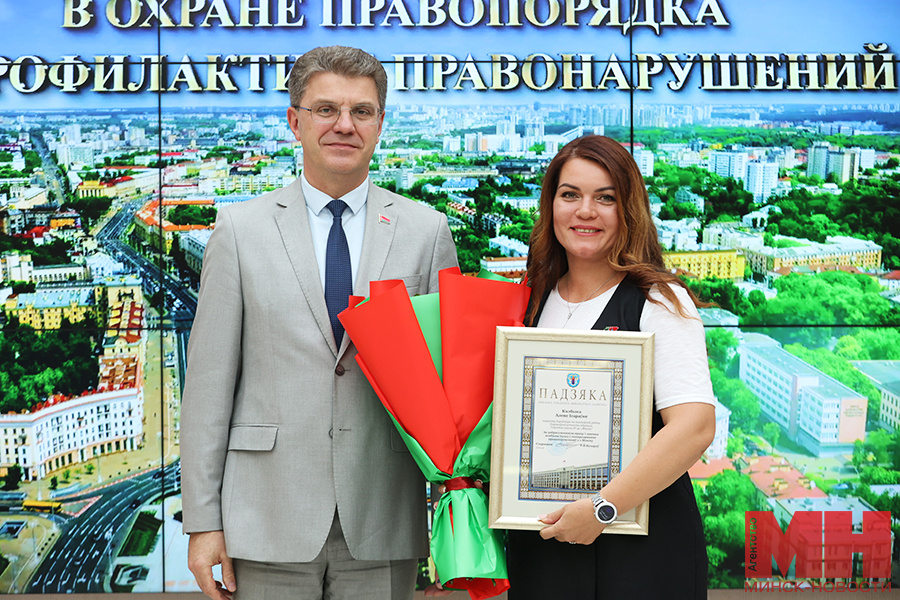 Торжественная церемония награждения минчан, принимающих активное участие в охране общественного правопорядка и профилактике правонарушений, состоялась в городской ратуше 11 сентября, передает корреспондент агентства «Минск-Новости». С приветственным словом к награждаемым обратился председатель Минского городского исполнительного комитета Владимир Кухарев. — Стало доброй традицией в преддверии Дня города проводить такие встречи, потому что это праздник, который объединяет всех жителей Минска и его многочисленных гостей. Вдвойне приятно, что здесь собрались единомышленники, которые очень многое делают для охраны правопорядка в нашем городе. Отличительной чертой Минска является то, что он спокойный и безопасный город. Это дорогого стоит. Но такой результат достигается не просто так, за всем этим стоит ежедневная и кропотливая работа людей, которые неравнодушны к своему делу, — отметил председатель Мингорисполкома. С ответным словом от имени всех награждаемых к руководству города обратилас