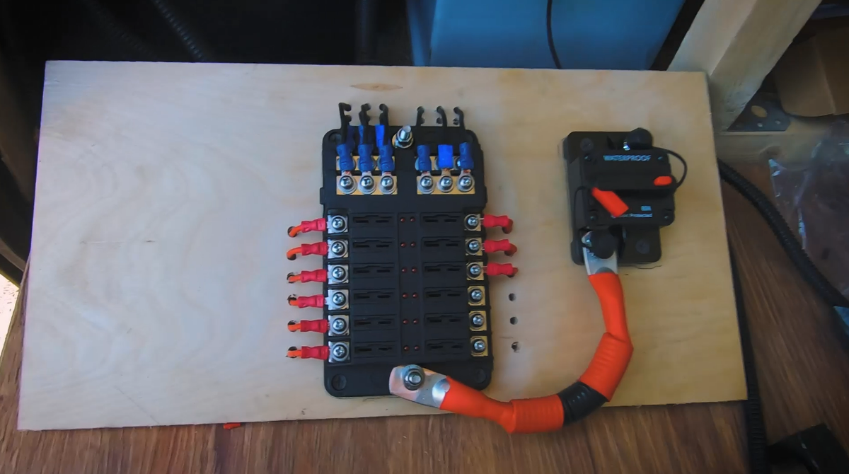 Последний этап по электрике. Схема такая: аккумулятор стартовый - реле зарядки - аккумулятор дополнительный - силовой предохранитель - блок предохранителей - блок переключателей - потребители. От стартового аккумулятора через реле к аккумулятору дополнительному провод мы проложили ранее под полом, все провода от аккумулятора до блока и переключателей, а потом от него до потребителей мы тоже проложили, только в стенах. Осталось только все это дело соединить через блок предохранителей и блок переключателей. Блок предохранителей и силовой предохранитель разместили на деревянной полочке, которую разместили над аккумулятором. Аккумулятор взяли гелиевый Дельта на 100Ач. Почему не лифипо, как у всех? Ответ прост: мы забыли про аккумулятор. Да, вот так вот, все планировали, заказывали заранее, а тут затупили, когда поняли свой косяк, до выезда оставалось пару дней, а ехать без света, воды и холодильника очень не хотелось. Быстро нашли в наличии вот такой вариант, да и с таким аккумулятором мы