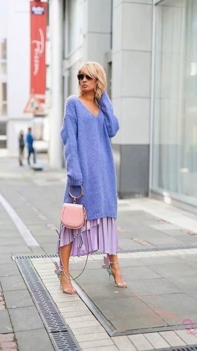 С этим цветом, моя дружба не складывалась никогда, шила платья, а выглядела, будто в ночнушке... Только пуховик "вытянула" и ношу сейчас с удовольствием. Но, последнее время стали часто попадаться нужные сочетания с другими цветами, даже захотелось дать ему еще один шанс. Собрала подборку сочетаний оттенков сиреневого цвета с другими цветами: Такое сочетание с глубоким серым, хотела бы попробовать внедрить в свой гардероб. Кстати. у меня есть оранжевый свитер крупной вязки, эта идея тоже мне интересна! Думаю внедрить в осенний гардероб, но более темные оттенки сиреневого. О розовом уже писала: О голубом: