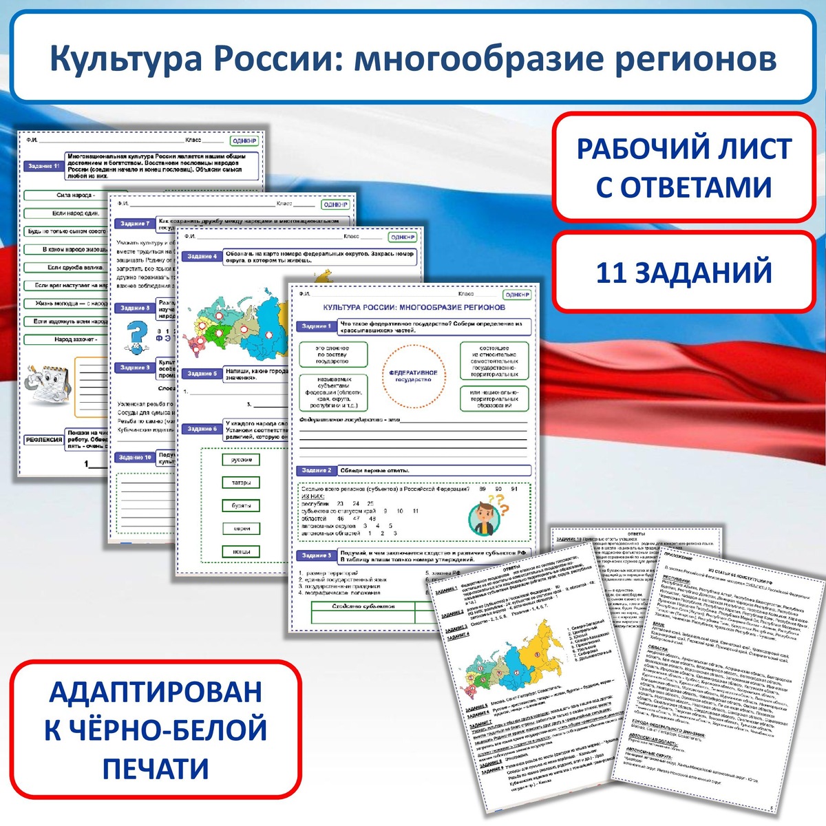 Рабочий лист "Культура России: многообразие регионов" к уроку ОДНКНР в 6 классе