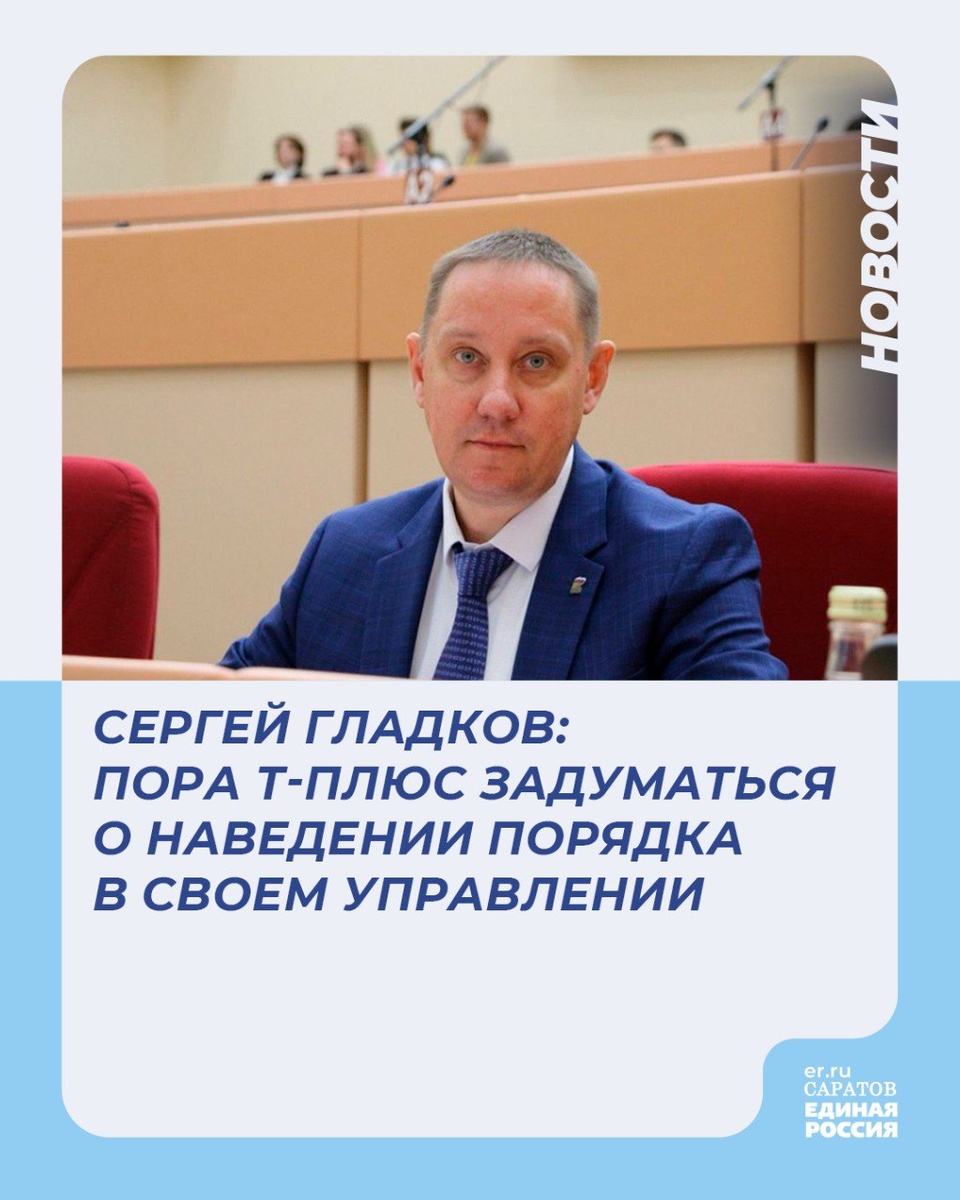 🗣️Сегодня на площадке Саратовской областной Думы обсудили работу компании Т-Плюс. Депутат Саратовской областной Думы Сергей Гладков считает эту компанию виновной в транспортных заторах на улицах Саратова из-за ремонта тепломагистралей и в разрушении городской инфраструктуры. 💬«Периодическое погружение областного центра в транспортный коллапс, разрушенное благоустройство, непредоставление услуги и несправедливое начисление за нее, по мнению жителей, являются постоянными спутниками работы теплоснабжающей организации. Коллеги-депутаты заявляли о невыполнении инвестпрограммы в Балаковском районе. По моему мнению, сегодня у компании должно быть и четкое понимание как и в какие сроки будут вестись работы по модернизации системы теплоснабжения в областном центре уже в 2025 году, как будет строиться взаимодействие с управляющими организациями и жителями, чтобы не допустить ухудшения качества жизни людей. Но сегодня об этом Т-Плюс не было сказано ни слова. Поэтому может быть все недочеты
