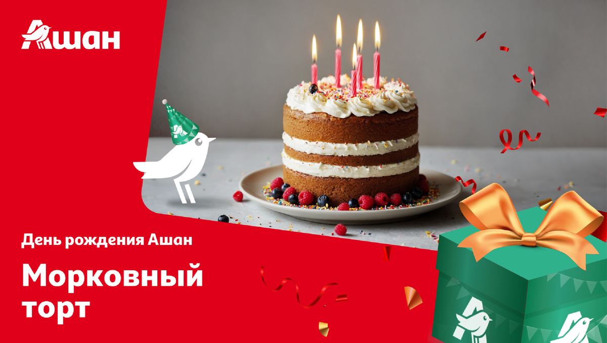 Осенью этот десерт кажется особенно вкусным! Нежный, насыщенный, неприторный — идеально и для уютного домашнего вечера, и для праздника. У нас как раз есть повод: день рождения Ашан! Вот уже 22 года создаем то, что вы любите. Отмечайте вместе с нами! Ингредиенты: Морковь — 450 г Мука пшеничная — 300 г Сахар — 200 г Апельсин — 1 шт. Яйцо куриное — 3 шт. Масло растительное — 150 г Орехи грецкие — 150 г Сметана от 20% — 500 г (2 упаковки) Сахарная пудра — 100 г Разрыхлитель для теста — 10 г Корица — 1 ст. л. Готовим! Шаг 1. Очистите морковь, промойте и натрите на мелкой терке. Нарежьте грецкие орехи: для начинки — размер кусочков выбирайте на свой вкус, для украшения — мелко. Включите духовку на 180 °C — пусть разогревается заранее. Шаг 2. Хорошо вымойте апельсин и снимите с него цедру тонким слоем — так, чтобы на ней не было белой части. Удобно делать это простой овощечисткой. Нарежьте цедру тонкими полосками 2–3 см длиной. Лайфхак, чтобы цедра не горчила: залейте ее водой, поставьте на