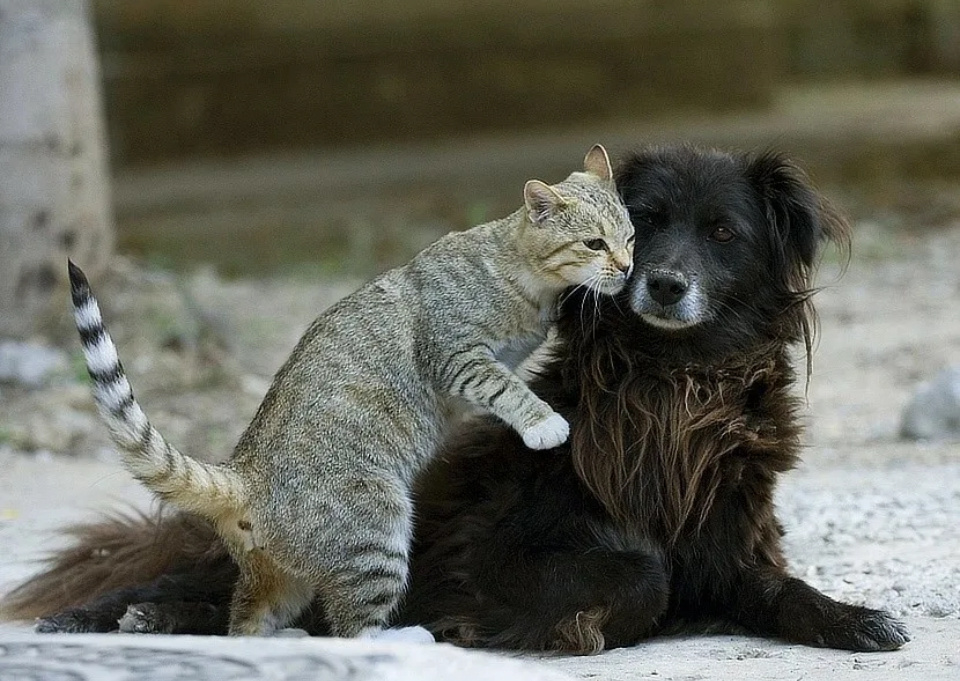 Пёс лёг и положил голову на лапы. Он явно не умел общаться с котами. Но и прогонять он его не хотел, он здесь не местный. Мало ли какие здесь правила.