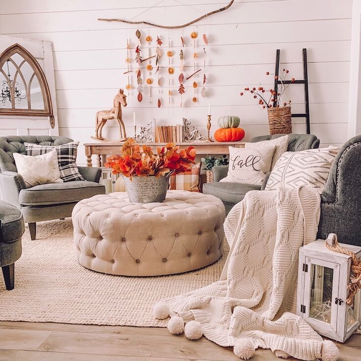 Ну вот и наступило время жёлтых красок и романтичных прогулок с шуршащими под ногами листочками. Как всегда, к осени в магазинах посуды и декора выходят новые осенние коллекции, чтобы наше настроение дома перекликалось с уютной картинкой за окном. Мне кажется это правильно – создавать себе сезонные декорации на кухне или в гостиной. В квартирах можно купить всего несколько вещей, задающих осенний уют, а в домах разыграться можно не на шутку. Особенно мне. Для порядка, 1 сентября я повесила на калитку осенний венок. На моё удивление бюджетных венков осенней тематики не оказалось на маркетплейсах и пришлось срочно делать его самой из минимальных подручных средств. Фотографии, увы, у меня нет. Осень – время натуральных материалов в декоре: плетеные корзинки, шишки, сухие кленовые листья, сухоцветы и пампасная трава, колоски, овёс, физалис, солома и т.д.. Всё то, что можно не покупать, а собрать в любом лесу. Изображения ёжиков, белочек, орешков и желудей, грибочков и тыковок из года в год