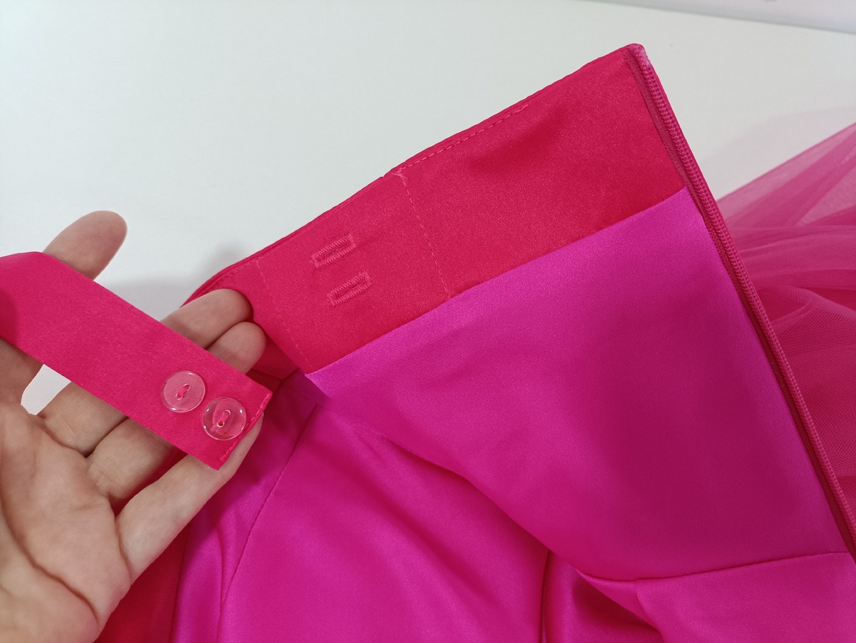 Выпускной вечер - повод нарядиться, особенно девочкам. Это повод надеть платье, даже если в повседневном гардеробе их не было. Такое часто встречается у современных девочек🤷 И вот вопрос: каким должно быть это платье? Длинным или коротким, пышным или скромным? Как правило, девочки сомневаются в выборе. Хорошо, когда некоторые предпочтения в принципе есть. Моя задача - выведать предпочтения, помочь сделать выбор и исполнить мечты. 😊 В данном случае известно: "хочу яркий розовый цвет, облегающий лиф, пышная юбка". И неизвестно: "на лямочках или без? С перьями или без? " Вот эти вот неизвестные данные дали мне повод предложить заказчице многовариативность. Например, лямочки могут отстегиваться. С каждой стороны лифа я выполнила кармашек с петлями для края лямки на обтачке платья. Для надёжности сделала по две петли и пуговицы. И перья. Их тоже сделала съёмными. Вот такая прикольная деталь получилась: Для пристегивания перьев на обтачке лифе также есть кармашки с петлями. Пристёгиваю:
