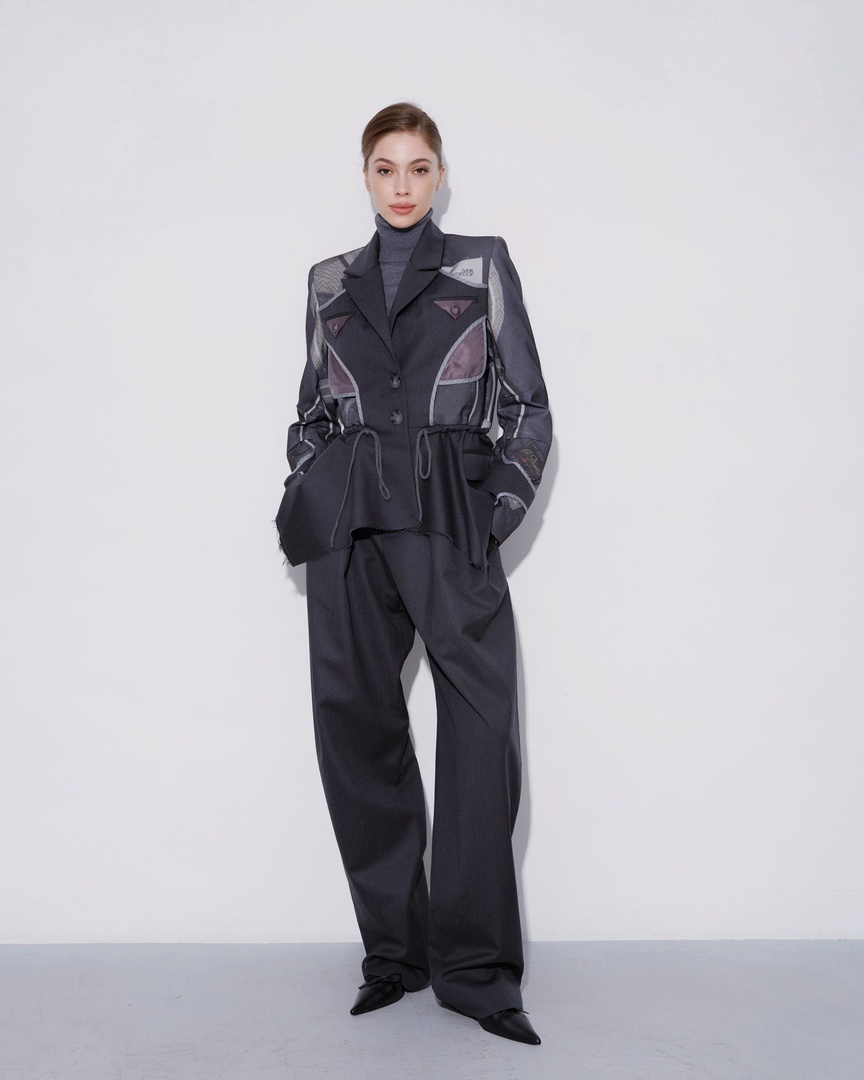 Первое изделие в коллекции, сшитое "изнанкой налицо" - это наглядный пример такой демонстрации. Швы, строчки, нитки – все это становится не просто элементом конструкции, а частью художественного замысла. Покупатель видит не просто костюм, а результат кропотливой работы, напоминающий о творческом процессе портного.