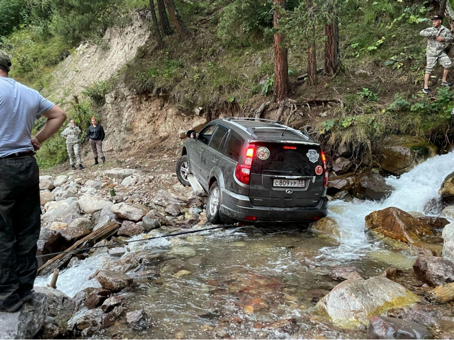 Там то, в районе Домбая, когда стало скучновато кататься на подъемниках, мы вдруг решили проверить внедорожные качества Ховера “Сурка”. Почему бы и нет?! Взять и засадить китайскую зверушку в горной речке рядом с обрывом? Пожалуйста! Ну и что, что сумерки, а мы на высоте 2400м и нам еще спускаться 2 часа?!
