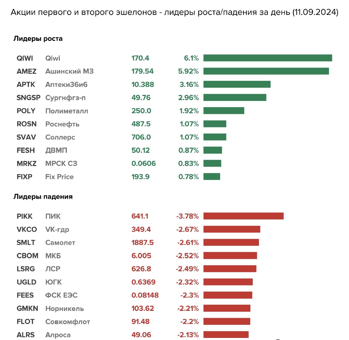 Итоги торгов 11.09.24 на Мосбирже - затишье перед заседанием ЦБ
