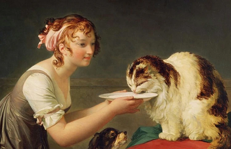 Удивительные существа эти пушистики. Гордые и ласковые, недотроги и игривые. Интернет пестрит мемами с выразительными "лицами" хвостатых и усатых. Куда уж мы без котиков! Предлагаю посмотреть несколько картин с совершенно разными котами и кошками. Как их видят художники. «Обед кошки» Маргерит Жерар (французская художница) Сюжет понятен. Собака с завистью смотрит на то, как кормят кошку. А кошку кормят своеобразно. Подносят блюдечко к самому носику. Не совсем понятно, кто тут в господствующем положении. По-моему, кошка)) Девушка с любовью относится к своей подопечной. Кошка благосклонно принимает еду из рук своей покровительницы. Или своей служанки?)) «Жюли Мане с кошкой» (1887) Пьер Огюст Ренуар