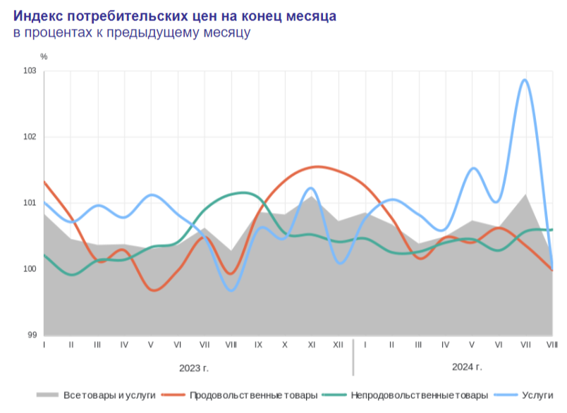 Инфляция в начале сентября — проблемы всё те же: топливный кризис, устойчивое кредитование и рост цен на бытовые услуги. Ключевая 20%?