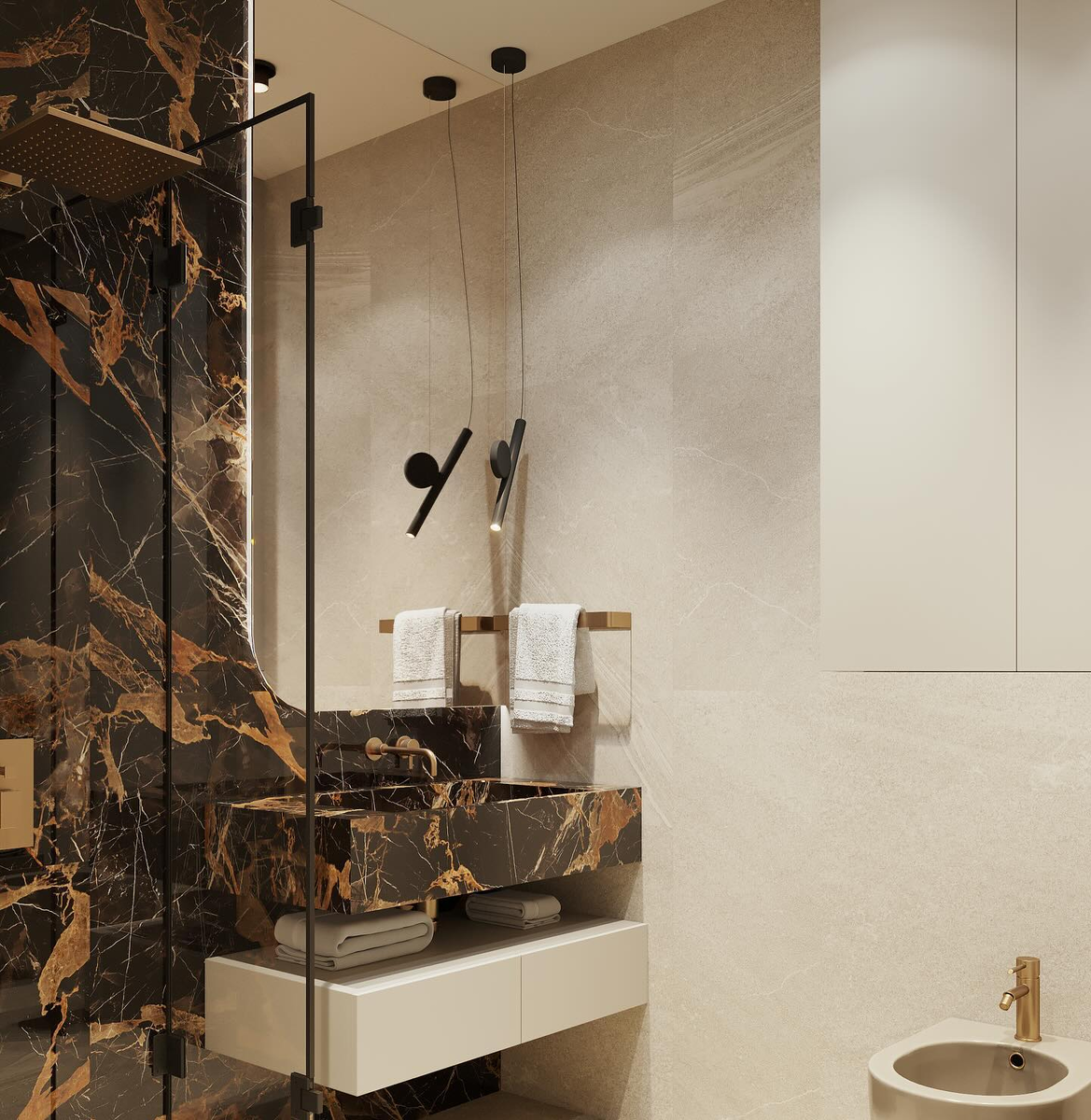 Сегодня захотелось показать вам санузел одного из наших текущих проектов. Для него мы разработали 2 разных варианта, и уже показали нашим заказчикам 😻Как вы думаете, какой вариант в итоге выбрали наши заказчики?